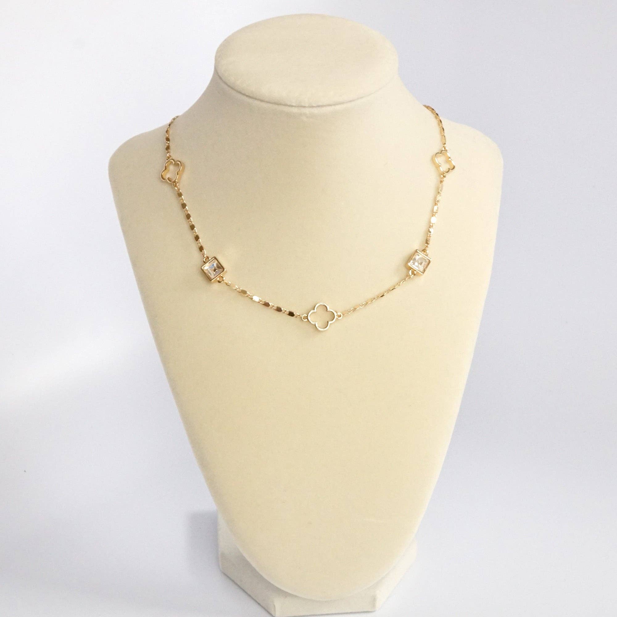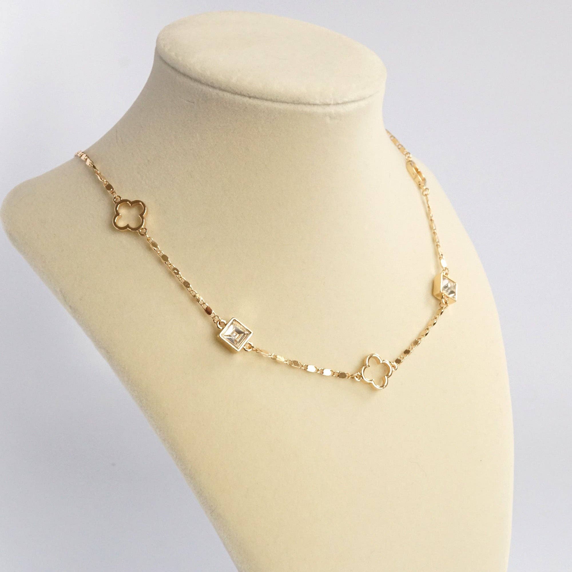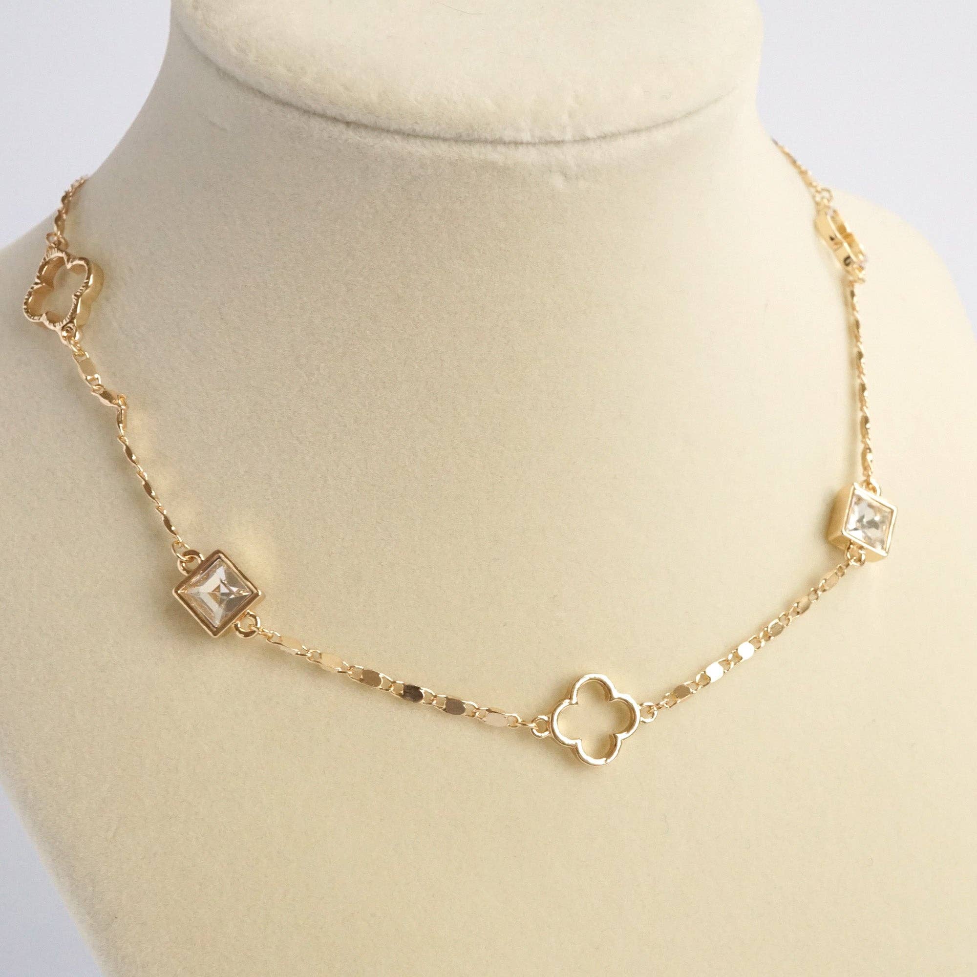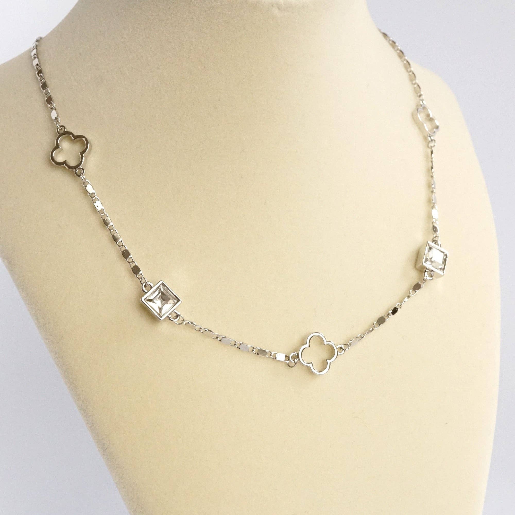 Clover station dainty short necklace with crystals in Gold and Silver Tones Add a touch...