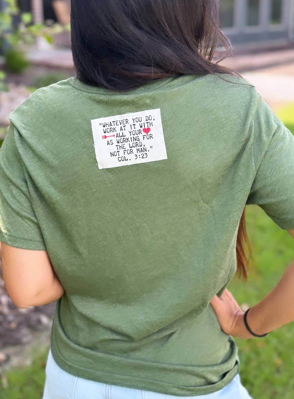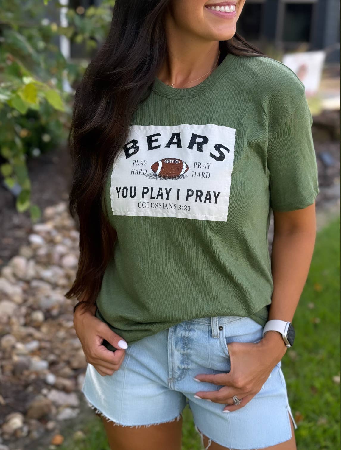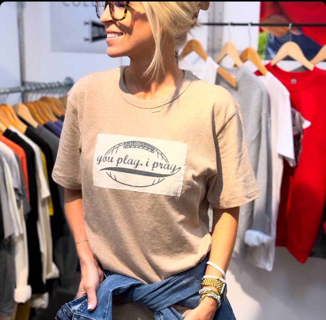 Our popular patch design on a classy neutral top is a fan favorite! Your sports...