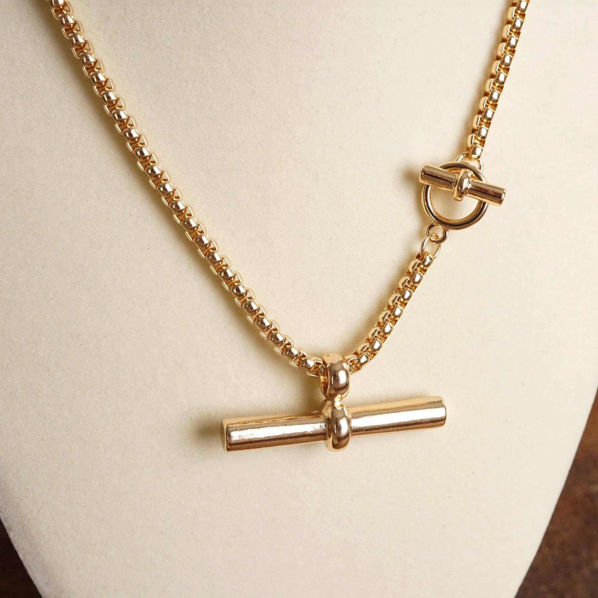 Sleek and minimalist, this toggle bar pendant necklace in gold tone is perfect for layering....